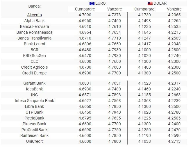 Aici găsiți cursul schimbului valutar la ghișeu și carduri de plată.